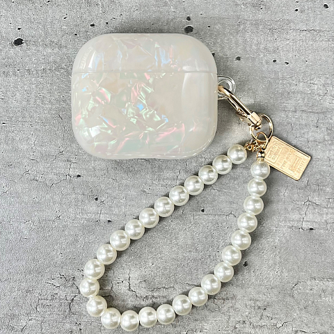 Бокс для наушников AirPods 4 силиконовый с брелком жемчужный №1