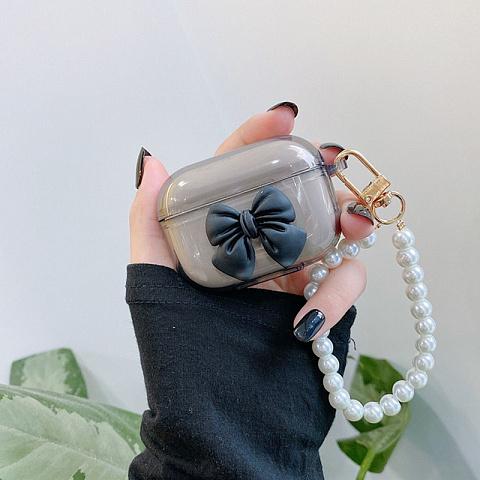 Купить Бокс для наушников AirPods Pro силиконовый с брелком "Чёрный бант" по выгодной цене!