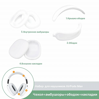 Чехол для наушников Airpods Max силиконовый 3 в 1, чехол + амбушюры + ободок
