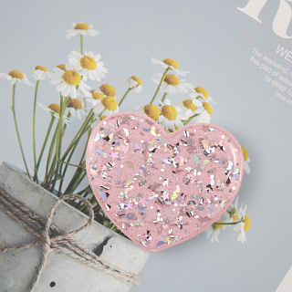 PopSocket для телефона Сердце с блёстками С-30 цветная подложка