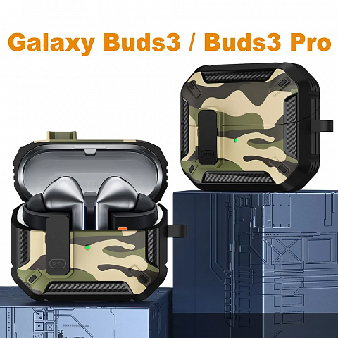 Купить Бокс для наушников Samsung Galaxy Buds 3/3 Pro пластик + силикон с замком и карабином Хаки К-14 по выгодной цене!