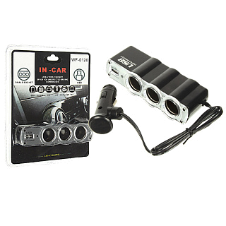 Разветвитель прикуривателя WF-0120 (напряж.сети 12/24V, вых.сила тока 0.5A) 3 гнезда + USB вход