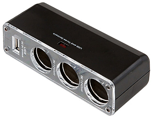 Разветвитель прикуривателя WF-0096 (напряж.сети 12/24V, вых.сила тока 0.5A) 3 гнезда + USB вход