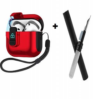 Бокс для наушников AirPods 4 пластиковый с замком и шнурком + щетка К-13